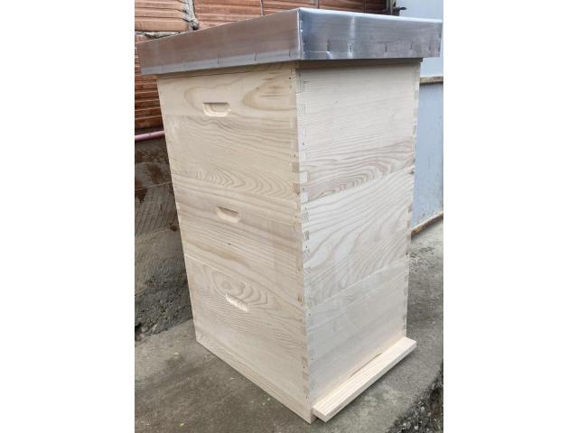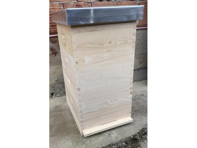 Komplet košnica se sastoji od sljedećih dijelova-krov,podnica,hranilica,tri nastavka sa skovanim ramovima.